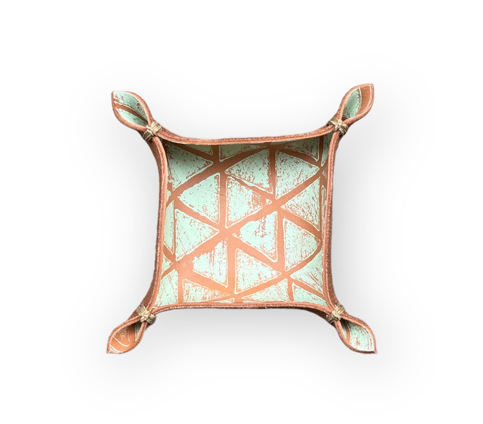 レザーレイストトレー スモール ミントグリーン ブロックプリント ハンドメイド